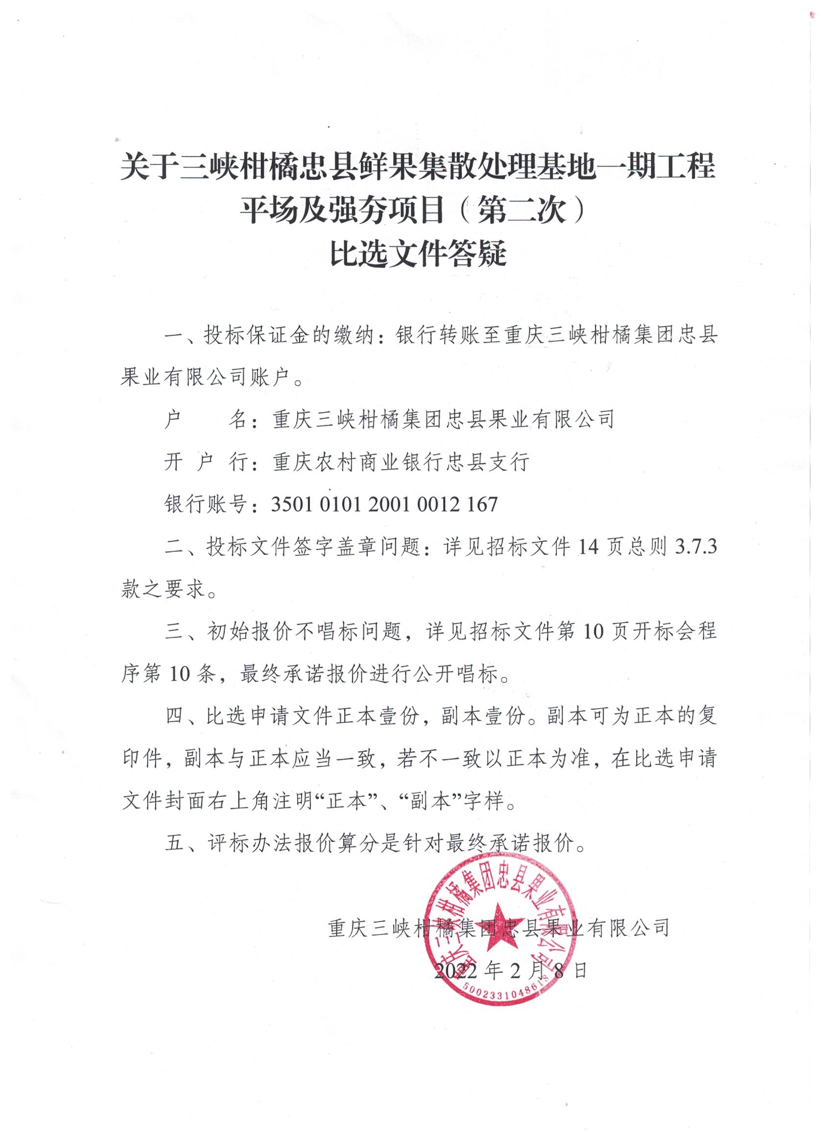 三峽柑橘忠縣鮮果集散處理基地一期工程 平場及強夯項目比選公告(第二次)